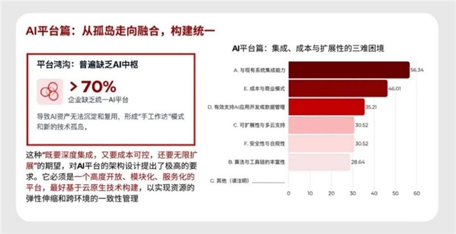 报告还揭示了企业在技术选型上的理性回归。企业不再盲目追求技术先进性,而是更加注重技术的开放性、兼容性与安全性。这种理性认知促使企业在技术选型时综合考量技术与业务的适配性,避免因技术孤岛或供应商锁定而制约AI的长远发展。例如,企业在选择生成式 AI 技术时,会优先考虑其是否支持多模型、多框架、多云部署,以应对技术快速演进带来的不确定性。